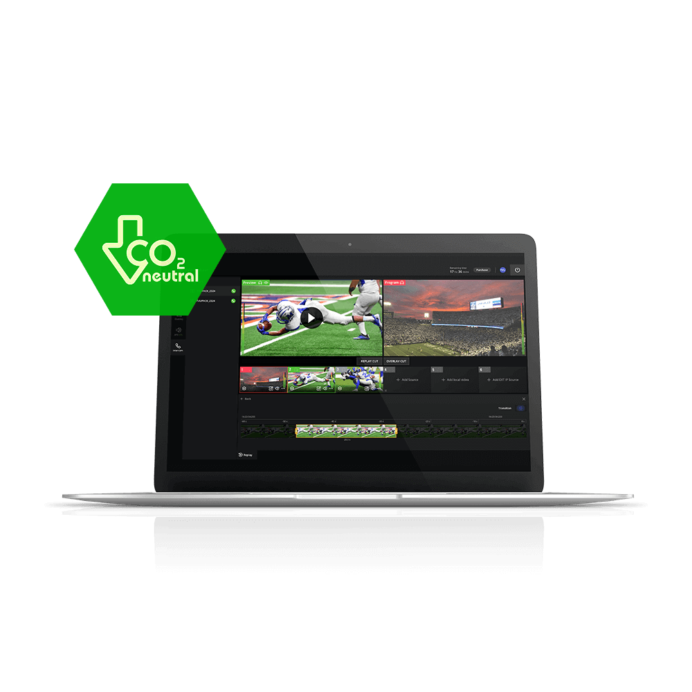 Live production leaves a heavy carbon footprint. Remote production in the cloud is considerably cleaner because it reduces or removes the need for OB Vans, satellite trucks and countless cars and flights for crew transportation.